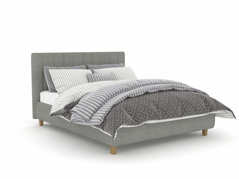 Современная и комфортабельная кровать с простым и гармоничным изголовьем, оснащенная вертикальным подъемным механизмом и вместительным отсеком для белья.