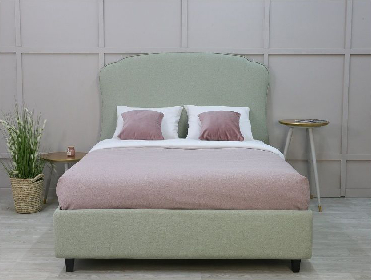 Кровать оснащена металлическим каркасом и деревянными ламелями, на которых располагается матрас. Благодаря этому обеспечивается прочность и долговечность кровати.
