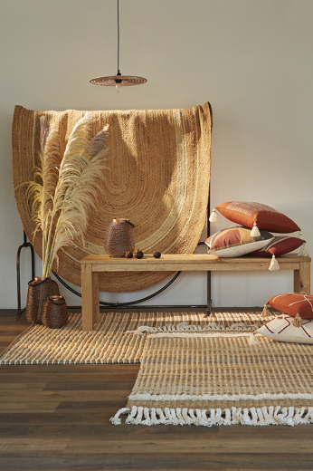 ! Стирка запрещена ! Гладить запрещено ! Барабанная сушка запрещена ! Не отбеливать ! Сухая чистка запрещена ! Допускается ручная чистка пятен. Рекомендуем незамедлительно удалять любые загрязнения. Для этого используйте бумажные салфетки или ткань с мыльным раствором воды. Регулярно чистите ковер пылесосом. Не применяйте турбощетку или щетку с жестким ворсом. Если появилась зацепка, не вытягивайте нити из ковра. Для их удаления воспользуйтесь ножницами. Стелите ковер на подложку, чтобы продлить срок его службы и защитить напольное покрытие. Небольшое количество ворса может выпадать – это нормально для ковров из натуральных материалов. Обращаем внимание, что острые предметы, открытый огонь, теплая поверхность и чрезмерная влажность могут испортить внешний вид и негативно повлиять на качественные характеристики изделия. Небольшая разница в цвете и фактуре джута в разных частях ковра делает каждое изделие уникальным. У новых напольных покрытий может присутствовать естественный запах, он абсолютно безопасен и при частом проветривании быстро исчезает. После вскрытия упаковки ковер в течение некоторого времени может сохранять элементы деформации вследствие долгого нахождения в скрученном виде, но уже через 1-2 недели он полностью выпрямится. Ковер может выцветать под воздействием прямых солнечных лучей. Рекомендуем периодически менять расположение изделия, чтобы цвет менялся равномерно.