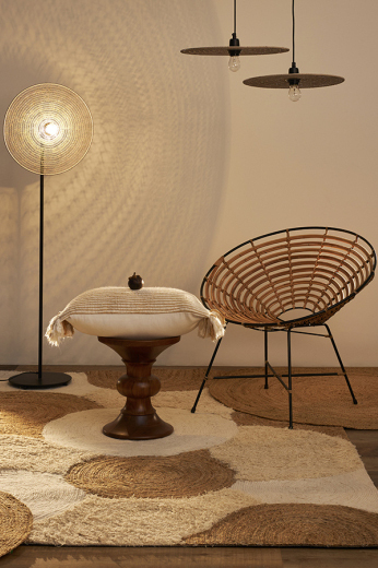 ! Стирка запрещена ! Гладить запрещено ! Барабанная сушка запрещена ! Не отбеливать ! Сухая чистка запрещена ! Допускается ручная чистка пятен Рекомендуем незамедлительно удалять любые загрязнения. Для этого используйте бумажные салфетки или ткань с мыльным раствором воды. Регулярно чистите ковер пылесосом. Не применяйте турбощетку или щетку с жестким ворсом. Если появилась зацепка, не вытягивайте нити из ковра. Для их удаления воспользуйтесь ножницами. Стелите ковер на подложку, чтобы продлить срок его службы и защитить напольное покрытие. Небольшое количество ворса может выпадать – это нормально для ковров из натуральных материалов. Обращаем внимание, что острые предметы, открытый огонь, теплая поверхность и чрезмерная влажность могут испортить внешний вид и негативно повлиять на качественные характеристики изделия. Небольшая разница в цвете и фактуре джута и переработанного текстиля в разных частях ковра делает каждое изделие уникальным. У новых напольных покрытий может присутствовать естественный запах, он абсолютно безопасен и при частом проветривании быстро исчезает. После вскрытия упаковки ковер в течение некоторого времени может сохранять элементы деформации вследствие долгого нахождения в скрученном виде, но уже через 1-2 недели он полностью выпрямится. Ковер может выцветать под воздействием прямых солнечных лучей. Рекомендуем периодически менять расположение изделия, чтобы цвет менялся равномерно.